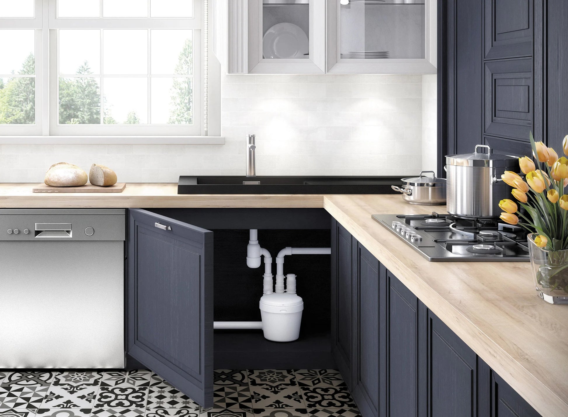 You need to install a toilet easily and quickly anywhere in your home. The chosen location either doesn't have a dedicated toilet drain (100mm) or is lower than your main drain.